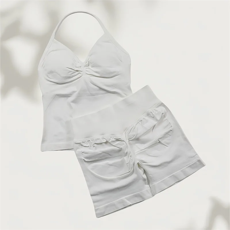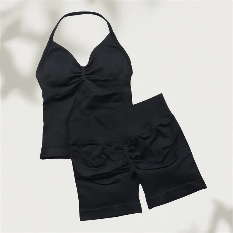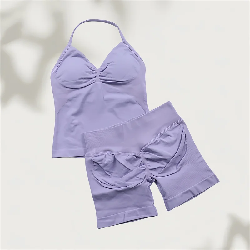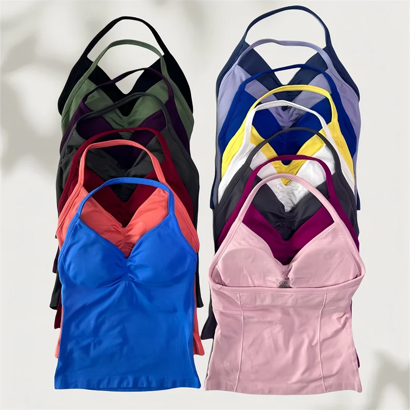 2 peças feminino impacto yoga conjunto sem costura palangre com tiras regata scr