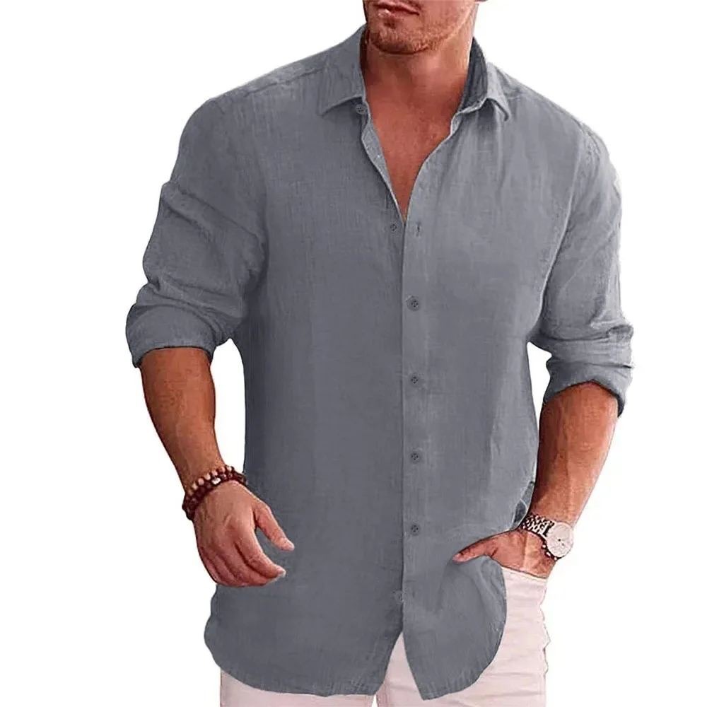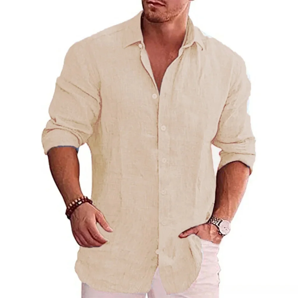 Camisa de manga longa masculina de linho de algodão outono venda quente cor sóli
