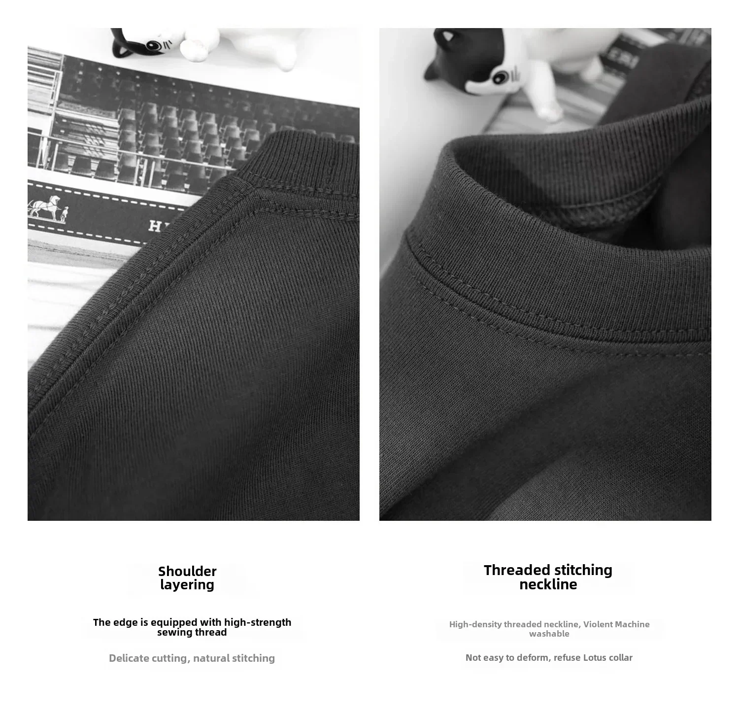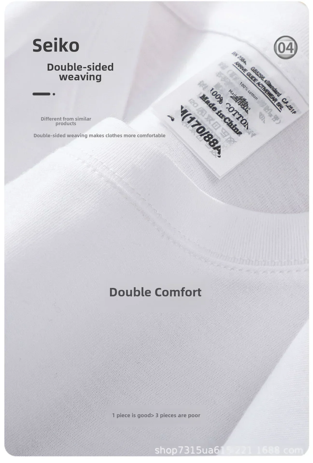 Verão algodão resistente 300 gramas americano puro algodão manga curta camiseta