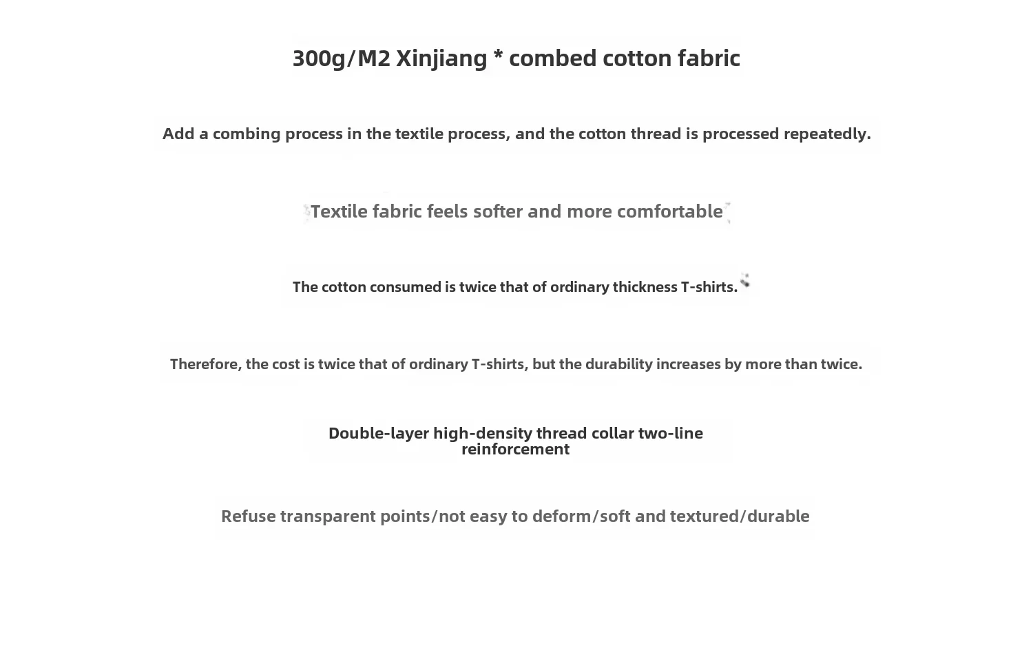 • Peso Pesado 300g:Com seu peso pesado de 300g, a camiseta proporciona uma sensação durável e substancial, garantindo uma utilização duradoura.